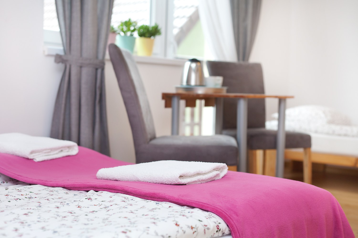 Pokój trzyosobowy zlokalizowany na poddaszu w Domku Snowboardera. Atutem pokoju jest balkon z widokiem na Czarną Górę. W pokoju znajdują się trzy łóżka pojedyncze z opcją łączenia. Dodatkowe wyposażenie to szafa, stół z krzesłami, komoda, czajnik elektryczny, szafka i lampka nocna, meble balkonowe. W łazience znajduje się kabina prysznicowa.